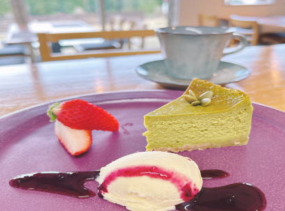 グレーテルの森は、全席窓側の席になります。阿蘇の5岳のうち烏帽子岳(えぼしだけ)・杵島岳(きしまだけ)・中岳(なかだけ)を望みながらランチを楽しむことができます。